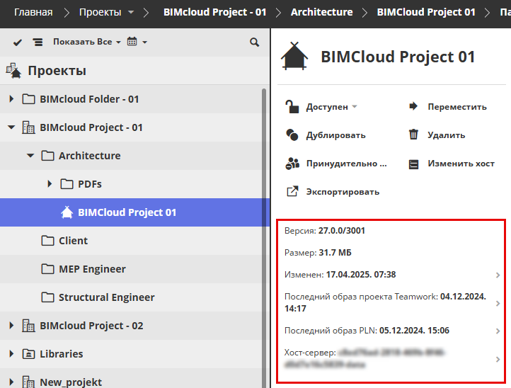При необходимости сделайте щелчок на элементе, чтобы перейти на соответствующую страницу BIMcloud Manager (например, щелчок на Хост-сервере открывает страницу Серверов).