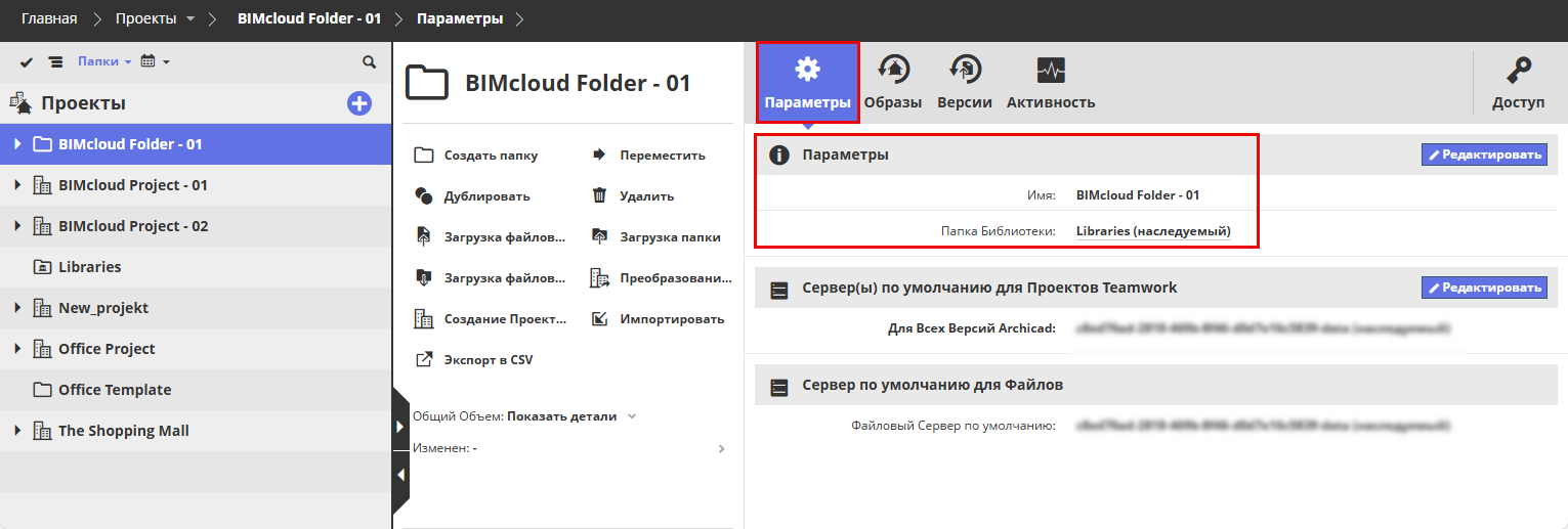 Когда пользователь создает общий доступ к проекту из Archicad, проект автоматически размещается в выбранной здесь папке BIMcloud Server.