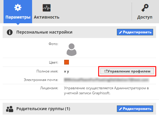 Каждый пользователь с облачной лицензией также может управлять своим профилем и лицензией.
