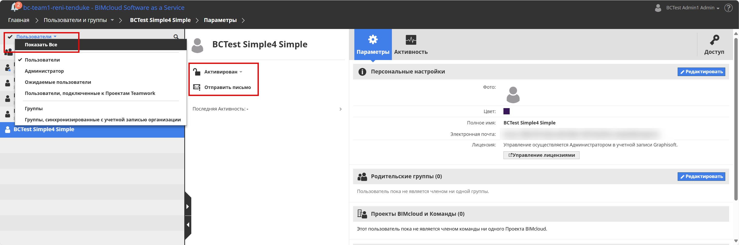 Прим.: Если вы используете BIMcloud SaaS с лицензированием на основе ключей, то управление пользователями осуществляется непосредственно в BIMcloud Manager. См. Добавление пользователей (лицензирование на основе ключей).