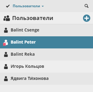 Деактивированный пользователь помечается красным значком в списке пользователей: