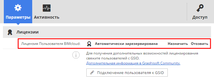 - Автоматическая (“плавающая”) лицензия: Автоматическая (“плавающая”) лицензия назначается из пула лицензий каждому пользователю, когда он начинает работать в Teamwork или использует иные функции BIMcloud. Эта лицензия BIMcloud остается назначена пользователю до тех пор, пока он не покинет проект Teamwork.