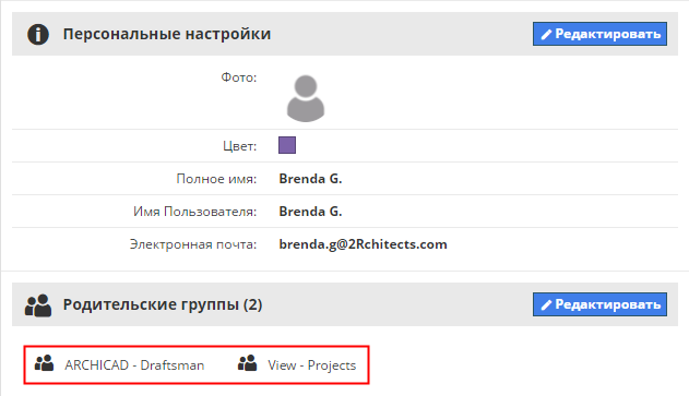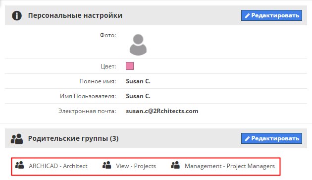 Чтобы обеспечить эффективную работу в режиме Teamwork, каждому пользователю следует назначить не менее двух групп: одну из групп Archicad и одну из групп Просмотра.