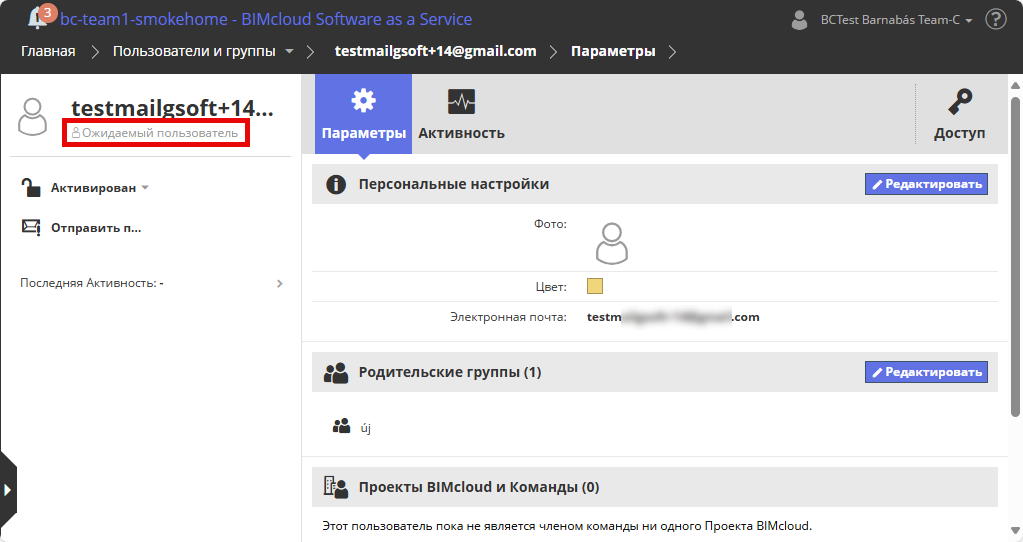 Даже для "ожидающих" пользователей администратор BIMcloud может назначить разрешения, членство в группах пользователей и другие настройки - не нужно ждать, пока приглашение будет принято.