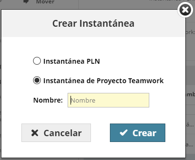 Cree una instantánea manual de un Proyecto Teamwork o Biblioteca en cualquier momento