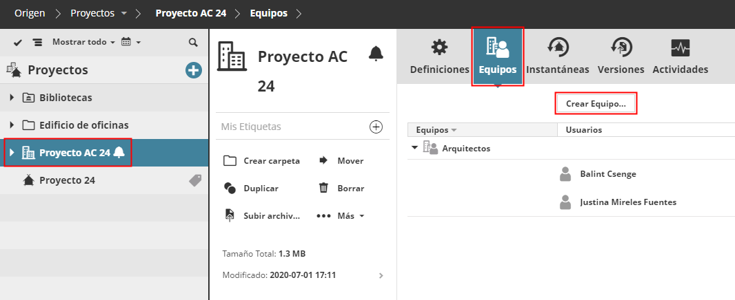 Crear o añadir un Equipo de Proyecto BIMcloud