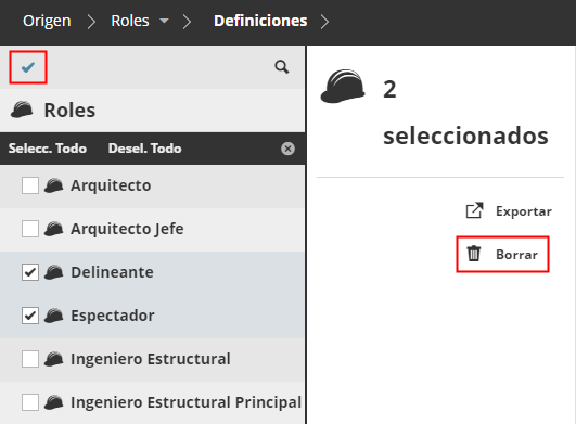 Seleccione uno o varios roles a eliminar.