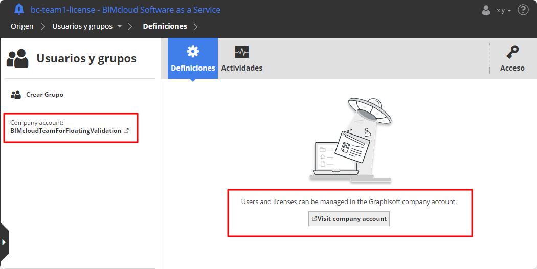 - Sus licencias y usuarios de BIMcloud se administran en la cuenta de su Empresa - en lugar del BIMcloud Manager