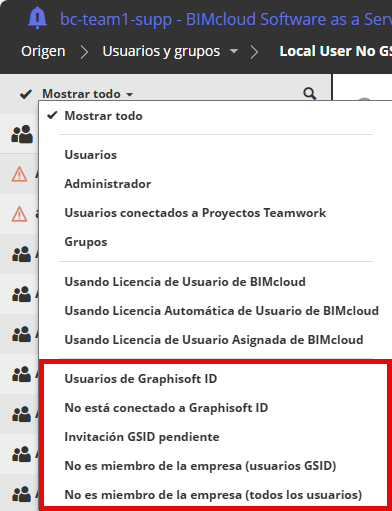 Compruebe la página Usuarios: Transición de los usuarios de BIMcloud