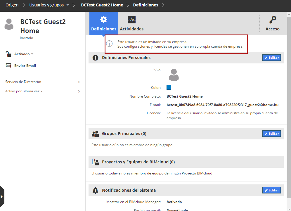 Los administradores de la Empresa pueden invitar a usuarios de otras empresas a su BIMcloud como invitados. (Los administradores pueden hacerlo desde la cuenta de empresa de Graphisoft)