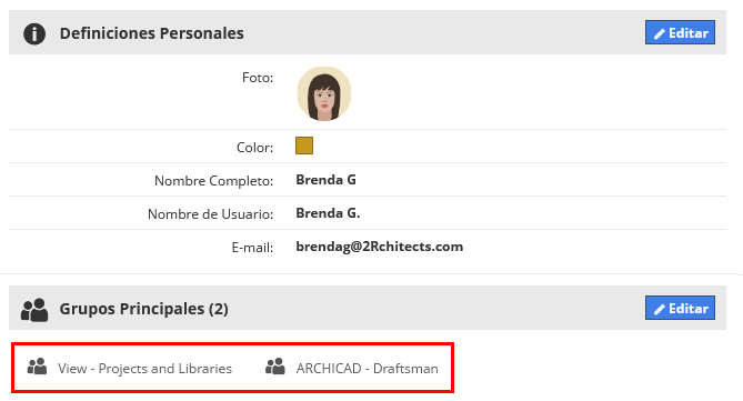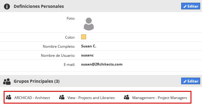 Para trabajar de forma efectiva en Teamwork, cada nuevo usuario debería ser añadido al menos a dos de los grupos: uno de los grupos de Archicad y uno de Visualización.