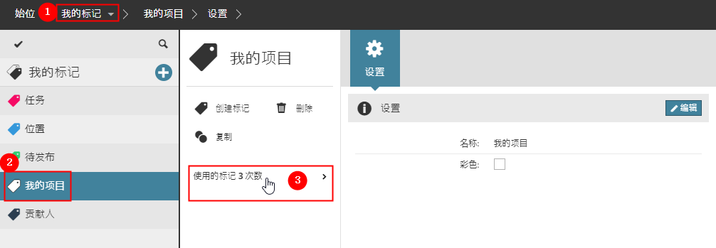 專案頁面開啟: 列表過濾為顯示所有帶蓋標籤的專案。