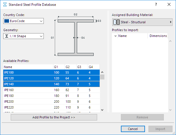 Click Import. The selected profiles are now available for use in your ARCHICAD project.