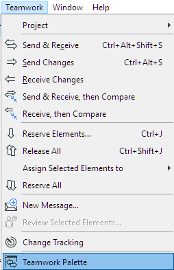 Teamwork-related commands are available in these locations: