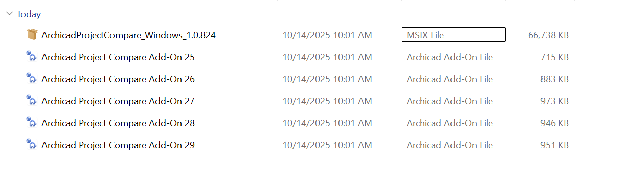 - Archicad Project Compare add-ons (you need two: one for each of your Archicad versions)