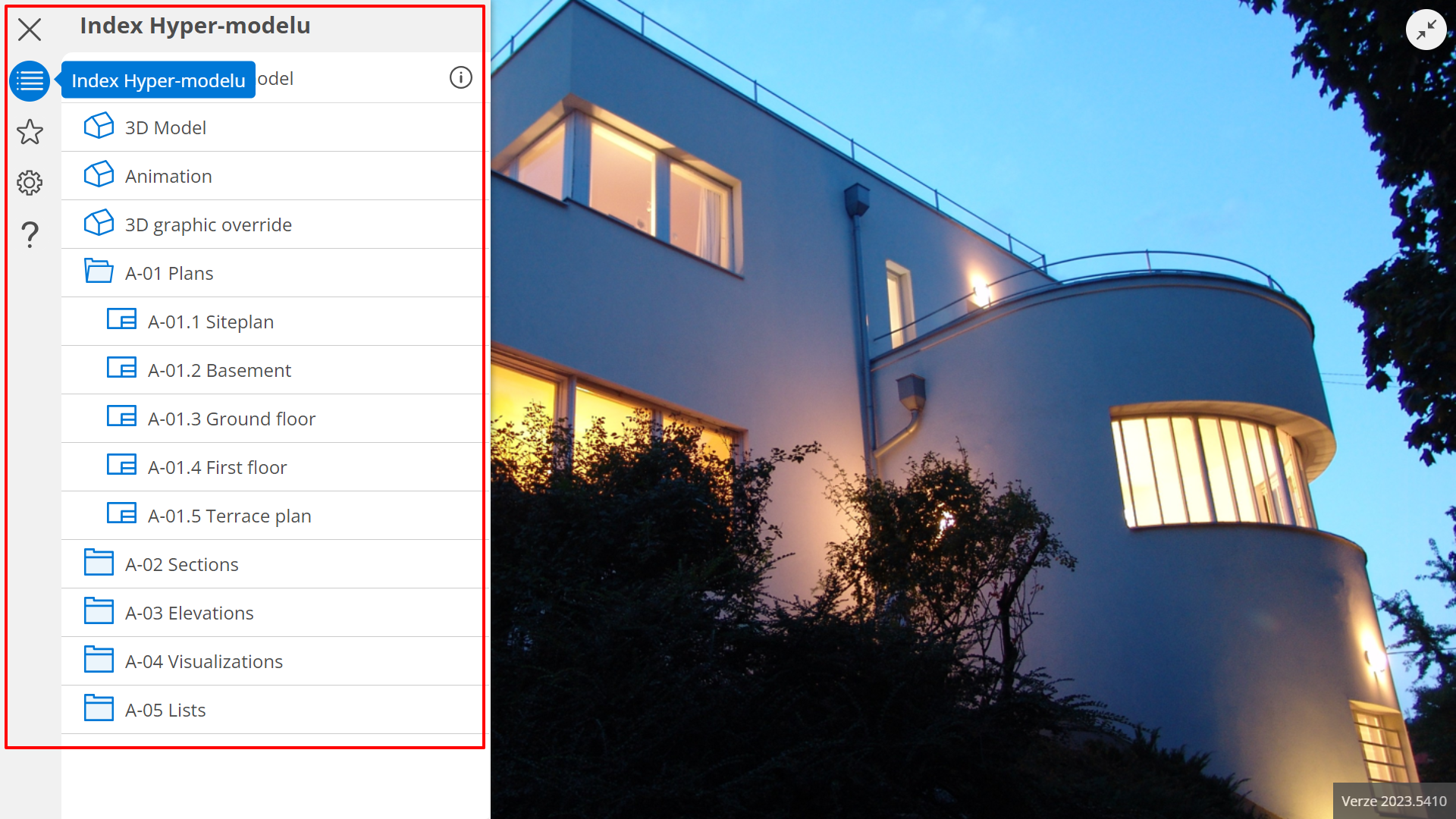 - Vyberte 3D model nebo 2D dokument z indexu hyper-modelu.