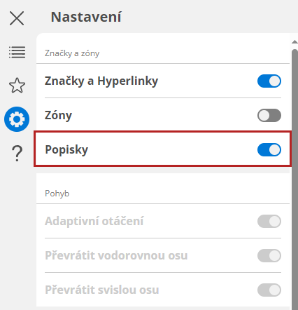 - Přepínáním nastavení Popisky je můžete zobrazit nebo skrýt.