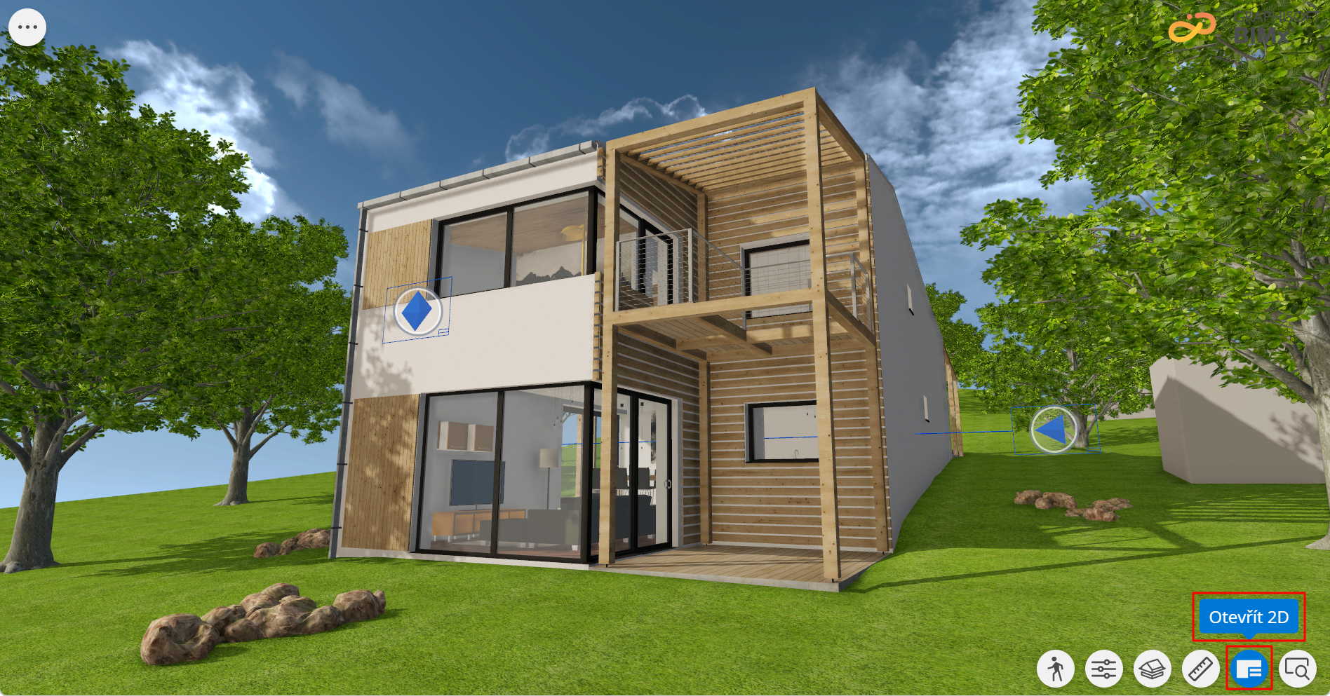 Klikněte na ikonu Otevřít 2D v pravém dolním rohu.