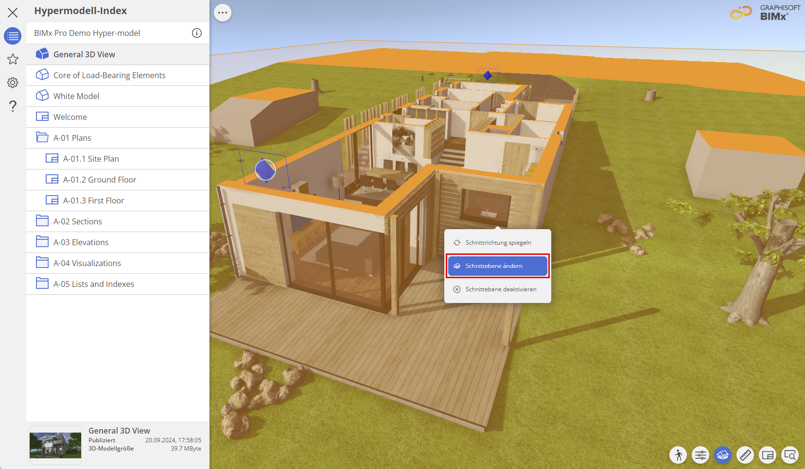 Die anpassbare Schnittebene ist eine Funktion von BIMx Pro. Sehen Sie es nicht? Erfahren Sie unter BIMx Pro Licensing, wie Sie auf die Pro-Funktionen zugreifen können: