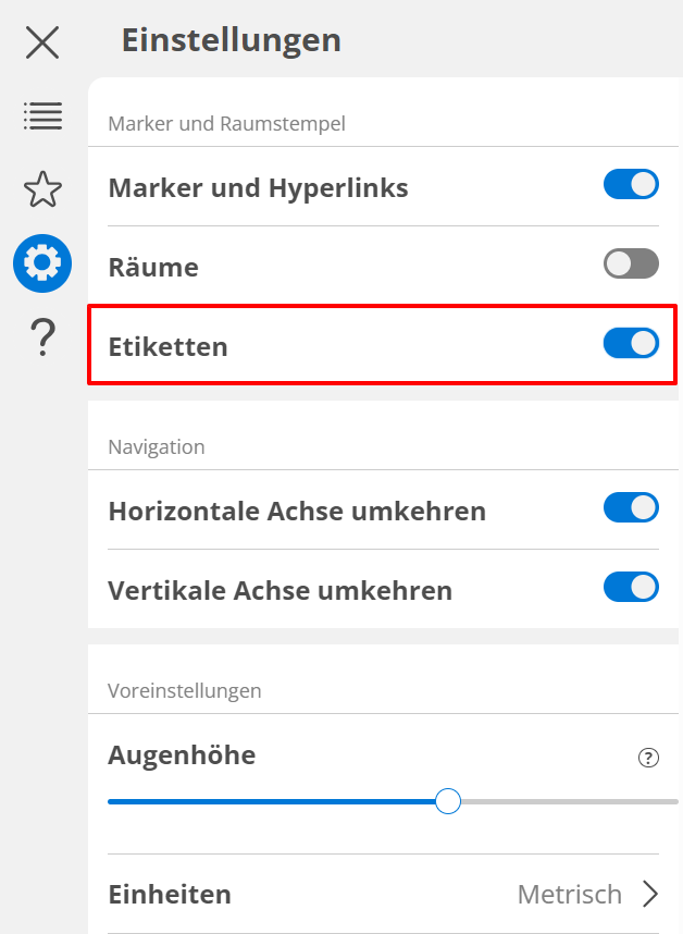 3. Drehen Sie die Etiketten um, um sie sichtbar zu machen oder zu deaktivieren.