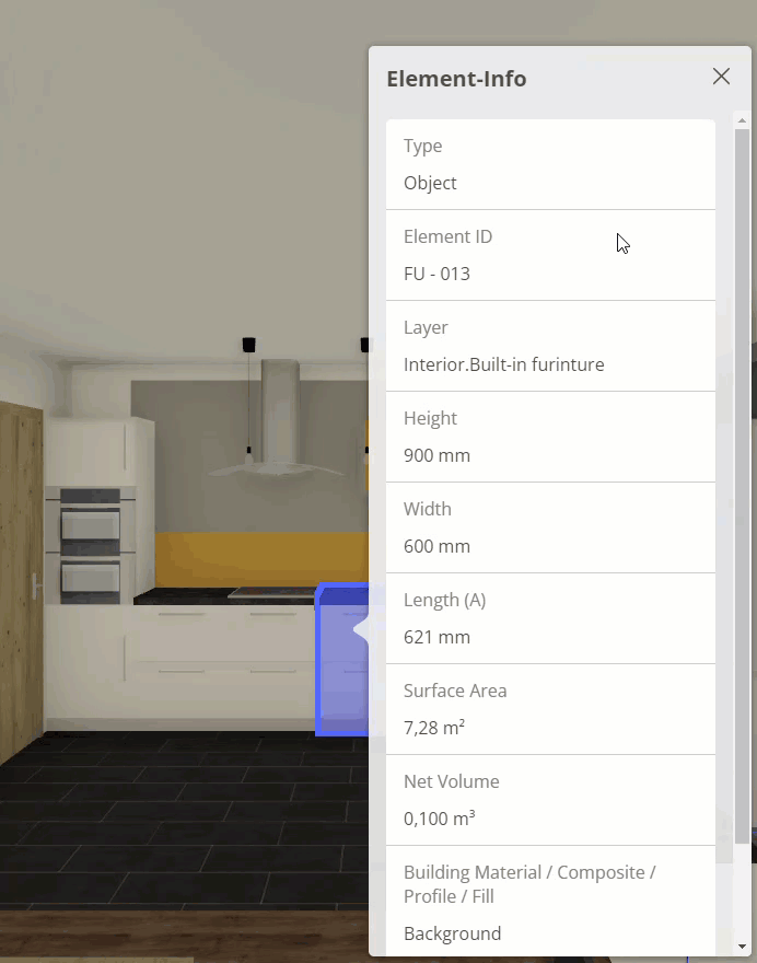 Erhalten Sie Informationen über das ausgewählte Element im 3D-Modell
