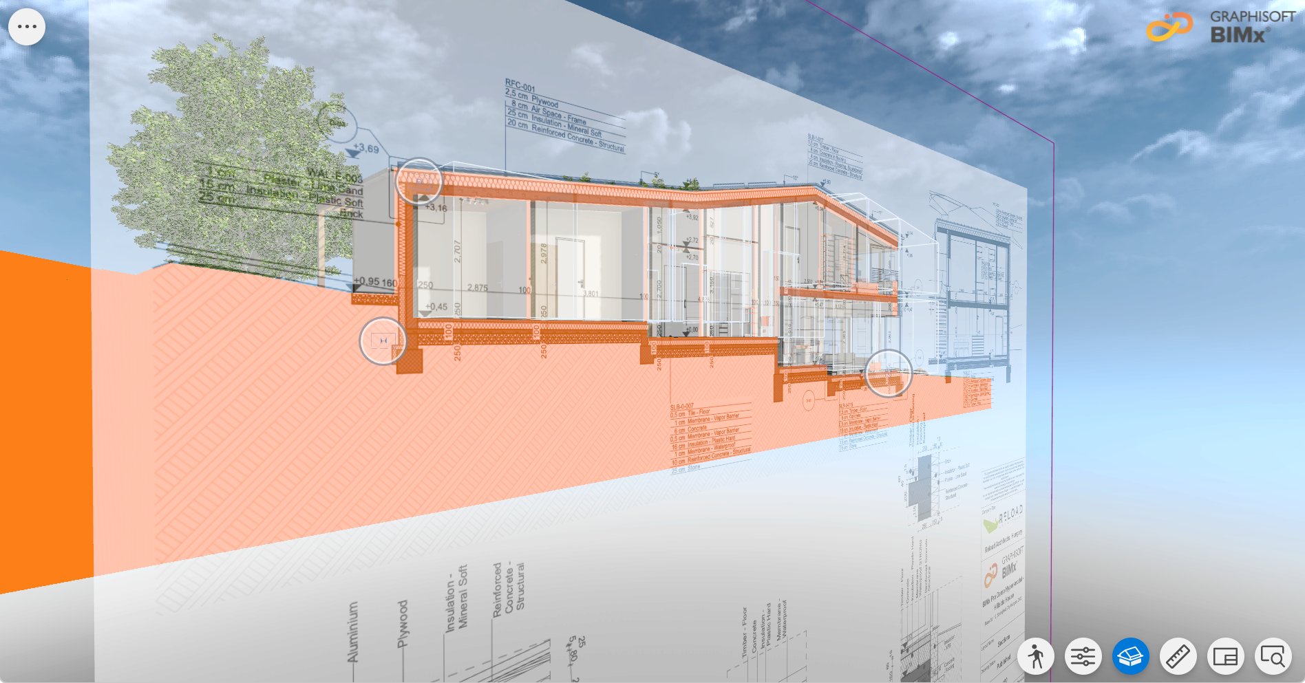 Das 3D-Modell öffnet sich, wobei das Layout überlagert wird, und es wird je nach Ansichtstyp horizontal oder vertikal geschnitten.
