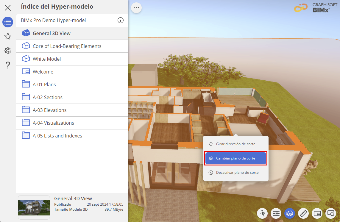 El plano de corte personalizable es una función de BIMx Pro. ¿No lo ve? Aprenda a acceder a las funciones Pro en BIMx Pro Licensing
