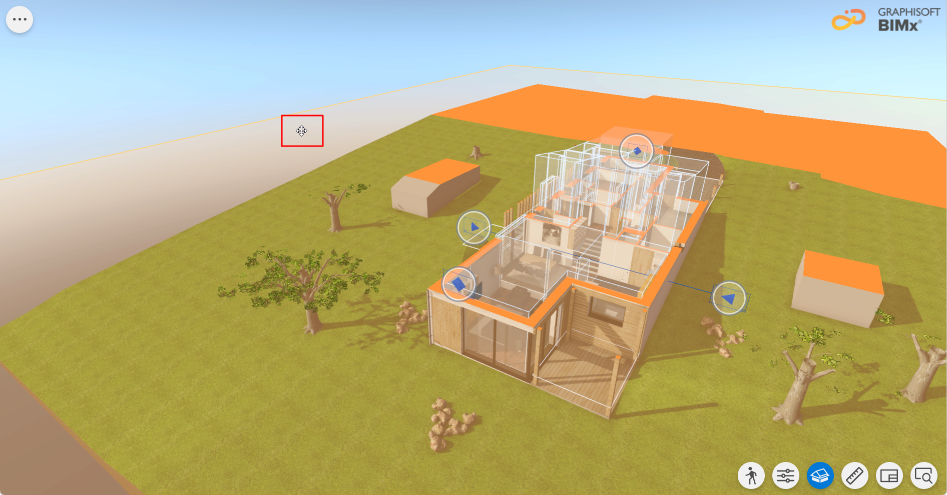 - Pase el ratón por encima del marco para ver el plano de corte. Puede cambiar el color del Plano de Corte utilizando el Selector de Color del Plano de Corte en los Ajustes de BIMx. Ver Selector de Color del Plano de Corte
