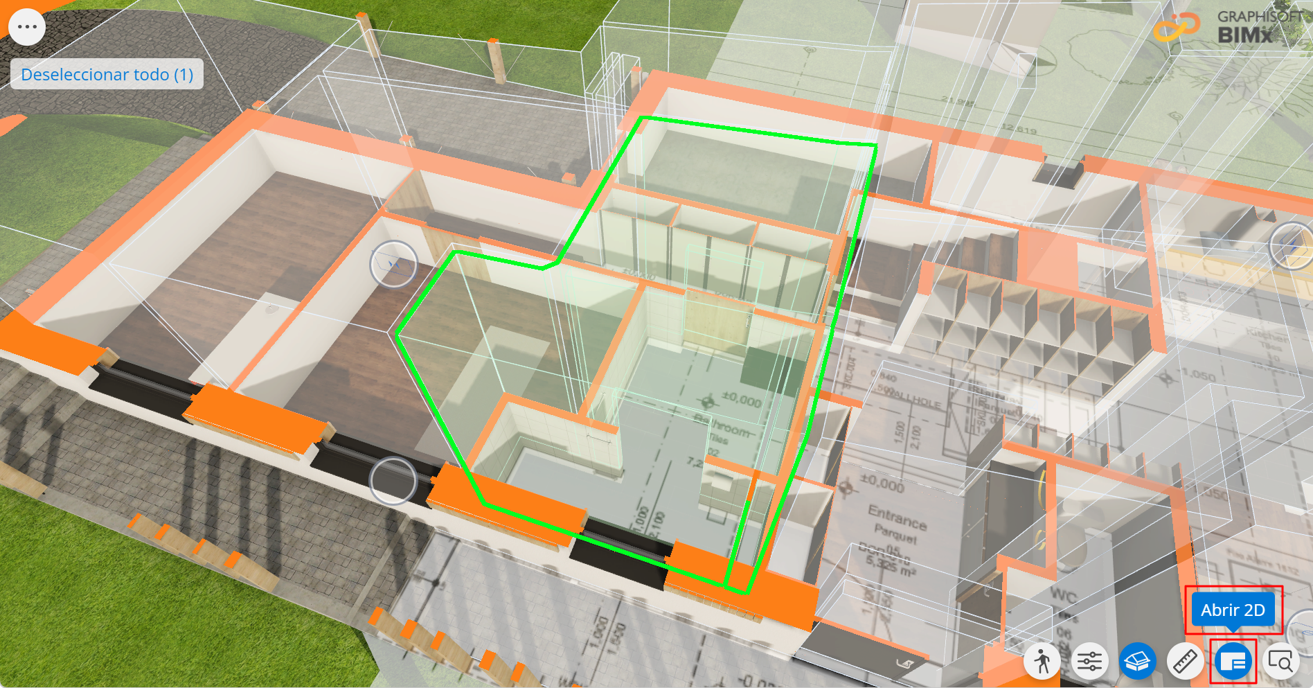 Para cambiar la visualización de una Zona de 3D a 2D, haga clic en Abrir en 2D en el menú inferior derecho.