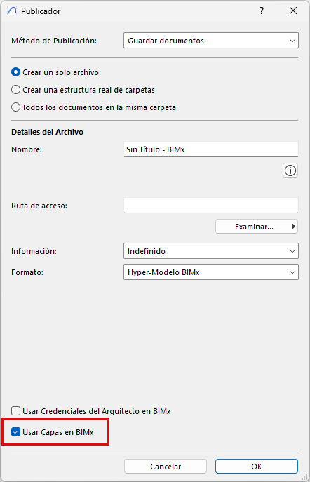 A diferencia de Archicad, al seleccionar otra combinación de capas en BIMx no se mostrarán elementos que no estén incluidos en el modelo 3D original. El contenido del hipermodelo BIMx debe definirse antes de su publicación.