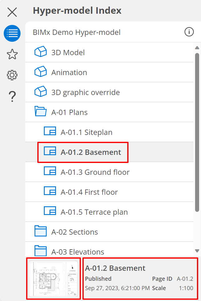 - Seleccione un modelo 3D o un documento 2D en el Índice del Hiper-modelo.