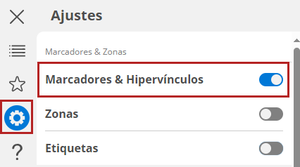 Los marcadores e hipervínculos se muestran por defecto. Para activarlos o desactivarlos: