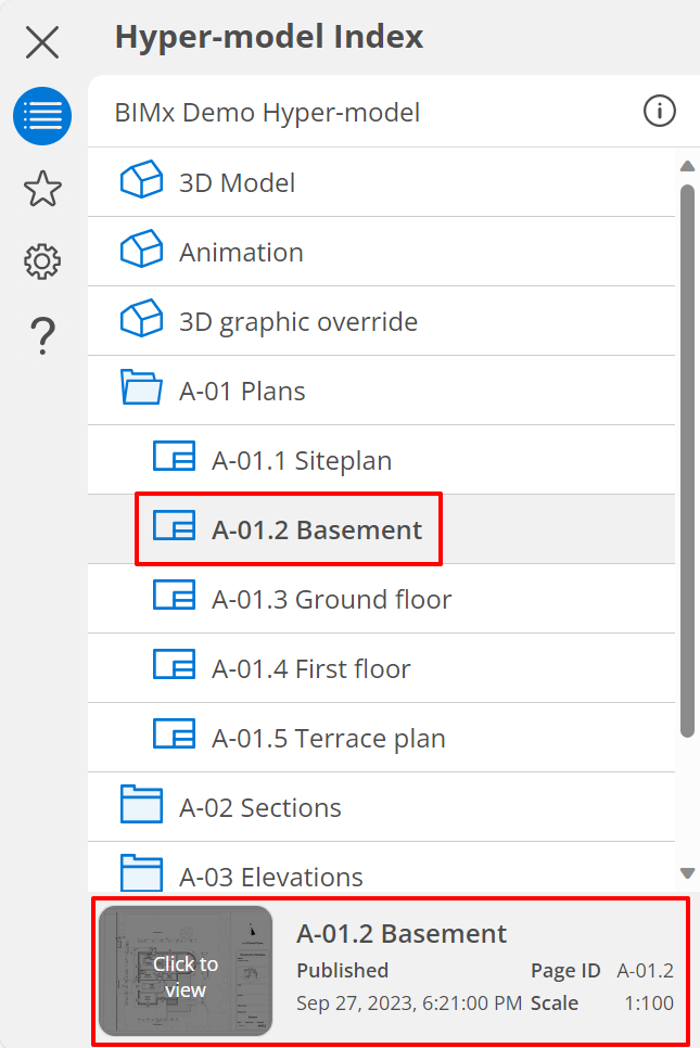 - Haga clic en un ítem para ver su información debajo, luego haga “Clic para ver” desde el icono de Previsualización para abrirlo