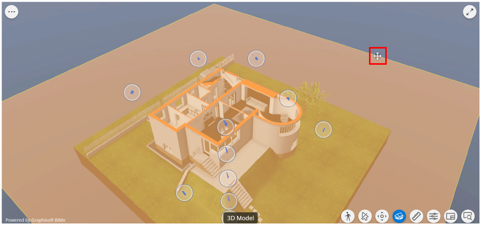 - Näytä leikkaustaso viemällä hiiren kursori leikkaustason päälle. Voit vaihtaa leikkauspinnan väriä BIMx-asetuksissa olevan leikkaustason värinvalitsimen avulla. Katso Leikkaustason värinvalitsin