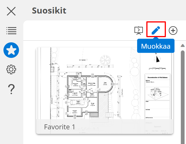 - Napsauta plus-kuvaketta lisätäksesi uuden suosikin nykyisen näkymän perusteella.