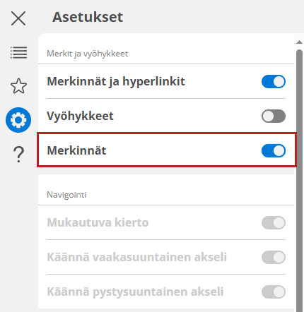 - Kytke Merkinnät saadaksesi ne näkyviin tai poistaaksesi ne käytöstä.