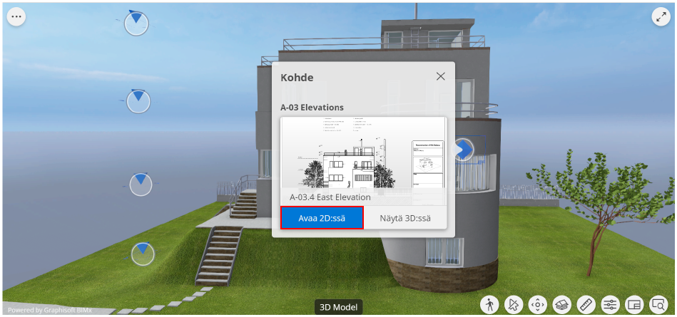 - Napsauta Kohde-valintaikkunassa joko Avaa 2D:ssä tai Näytä 3D:ssä navigoidaksesi tarvitsemaasi näkymään (tai napsauta esikatselua).