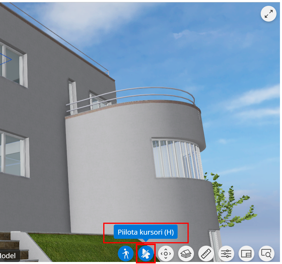 - Napsauta Piilota kursori -kuvaketta (vasemman alakulman ensimmäinen kuvake) tai paina H-näppäintä