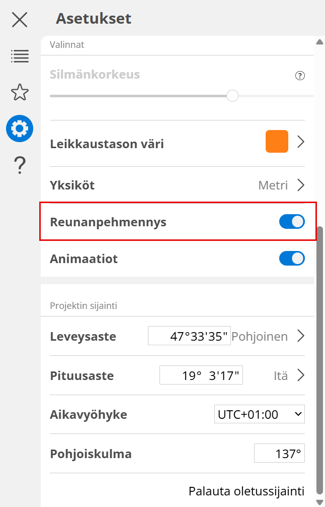 Reunantasoitus on oletusarvoisesti päällä, jotta BIMx 3D -näkymien reunat olisivat tasaisemmat.