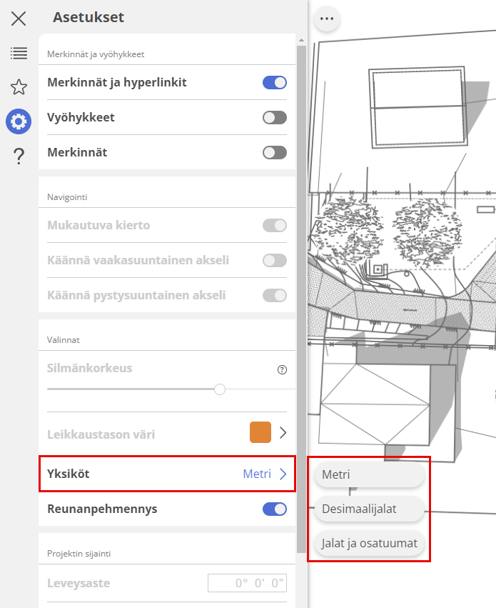 Mittakaavojen välillä vaihtaminen pohjapiirroksissa