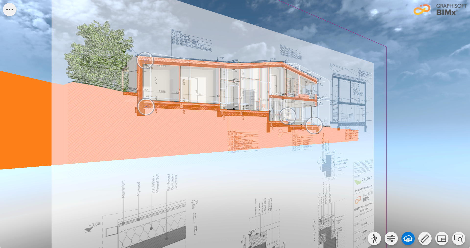 Le modèle 3D s’ouvre, le mise en page étant superposée, et il est coupé horizontalement ou verticalement selon le type de vue.