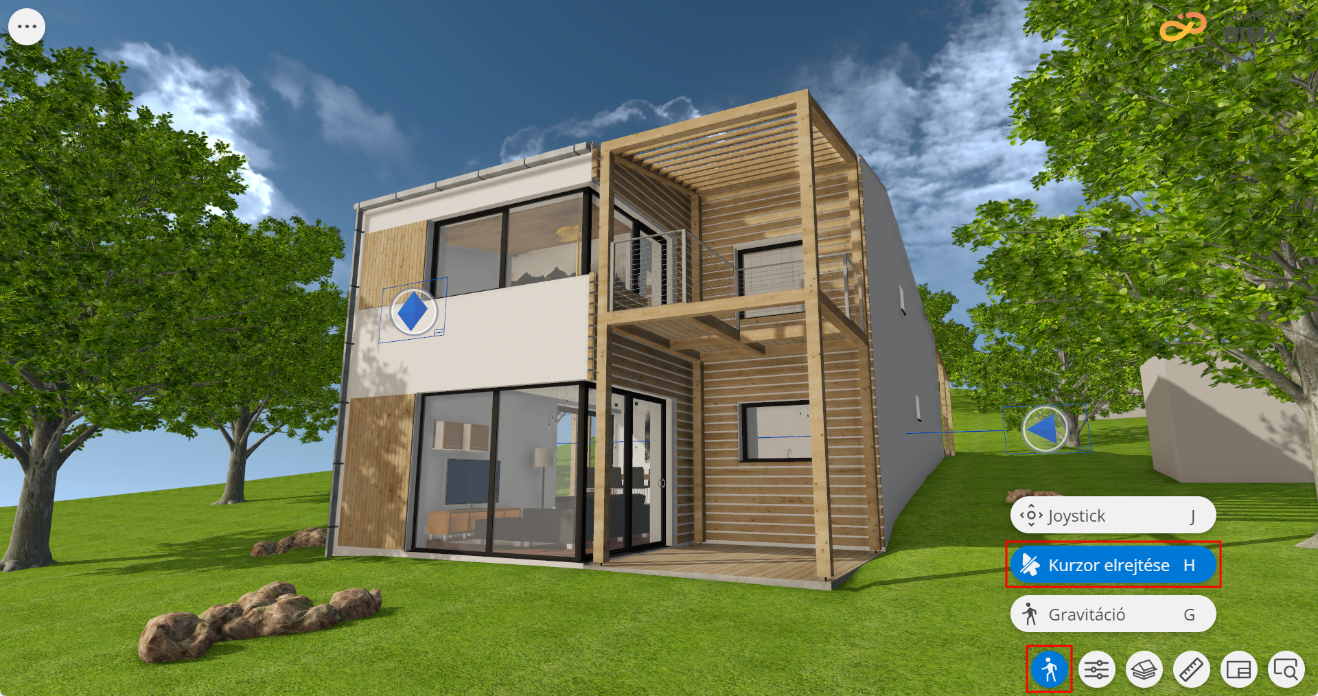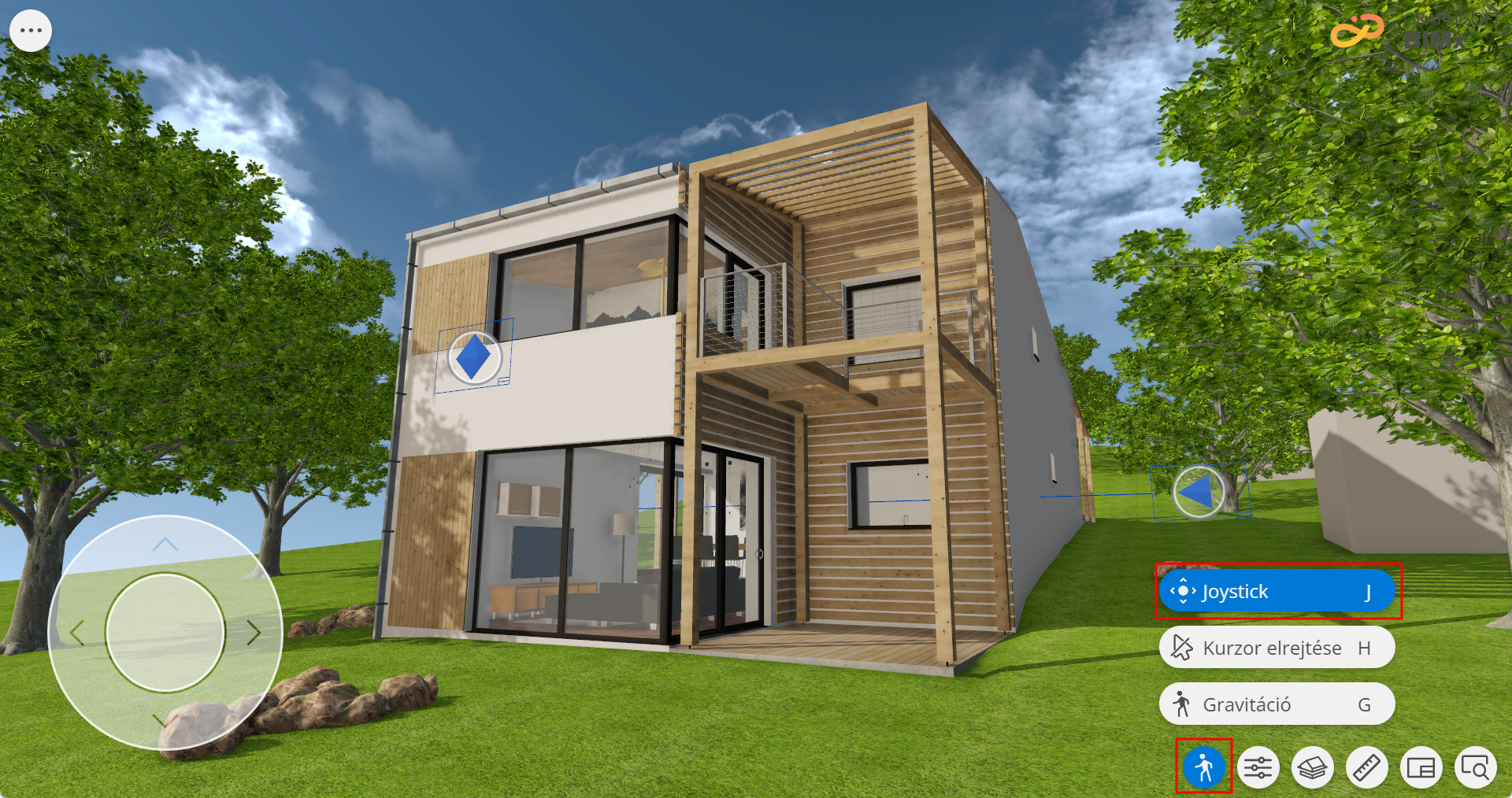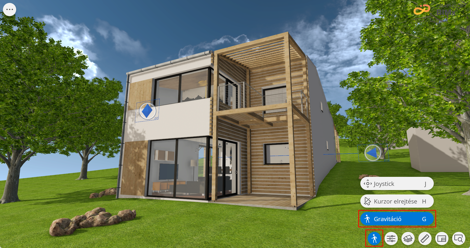 Kapcsolja be a Gravitációt, hogy első személyű nézetben sétálhasson végig a modelljén. Ha a Gravitáció be van kapcsolva, át tud menni az ajtókon (még a zárt ajtókon is), ellenben a falakon nem.