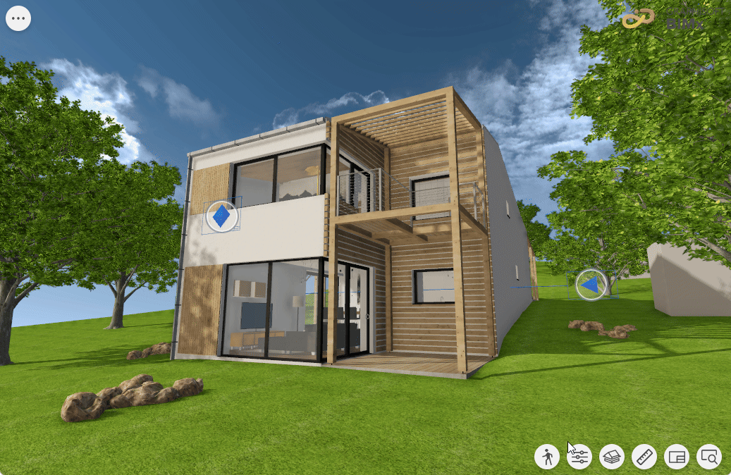 Tipp: Egy elemre való dupla kattintással vagy dupla koppintással az épület frontális nézetbe kerül. Ez segít az axonometriai homlokzati/metszeti nézetek egyszerű létrehozásában. Ezt kombinálhatja metszősíkkal, különböző napbeállításokkal idő szerint, és elmentheti kedvenc nézeteit.