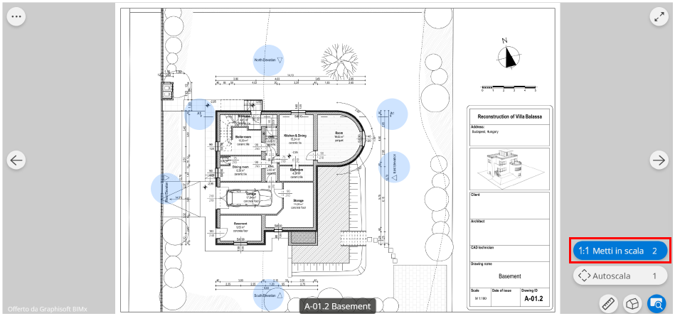 - Dai comandi visualizzati, fare clic sull'icona 1:1 (Metti in scala) o premere il tasto 2 per ingrandire un documento 2D alla scala 100%.
