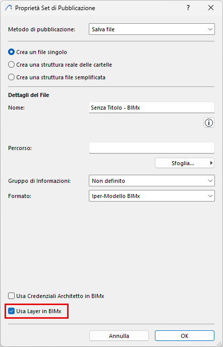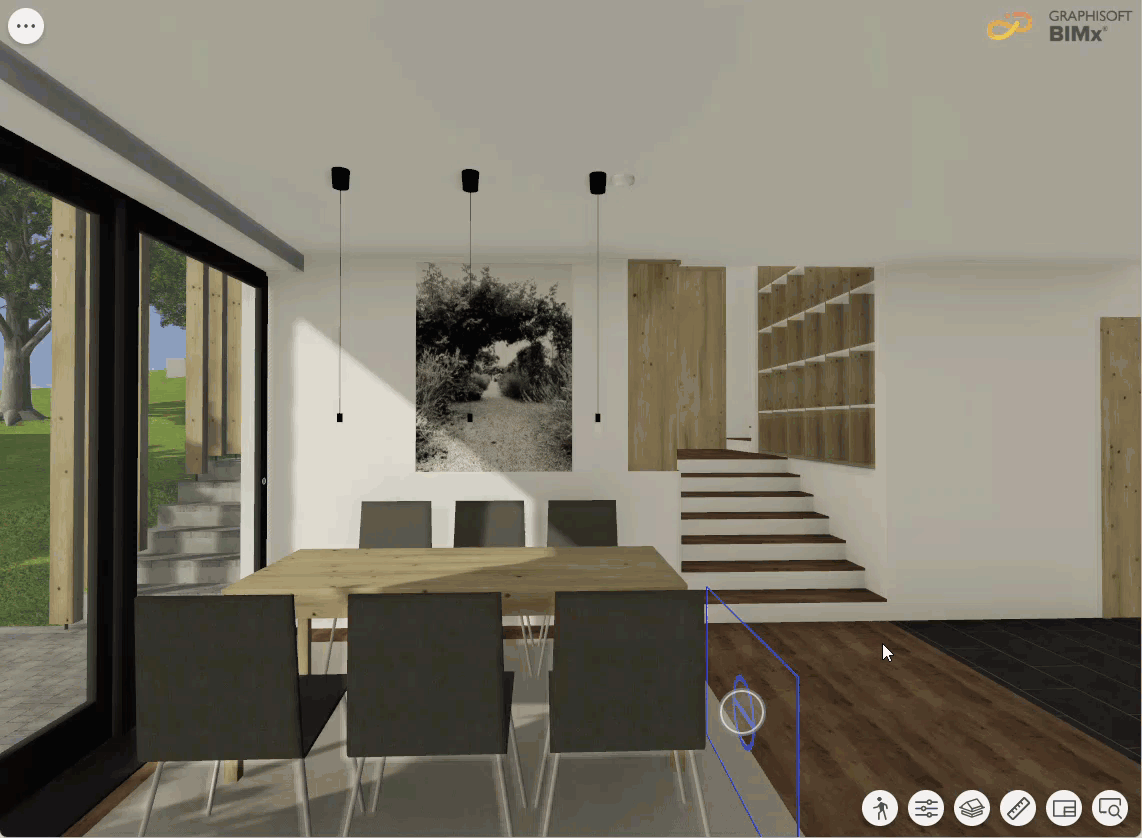 A differenza di Archicad, la selezione di un'altra combinazione di lucidi in BIMx non rivela elementi non inclusi nel modello 3D originale. Il contenuto dell'Iper-Modello BIMx deve essere definito prima della pubblicazione.
