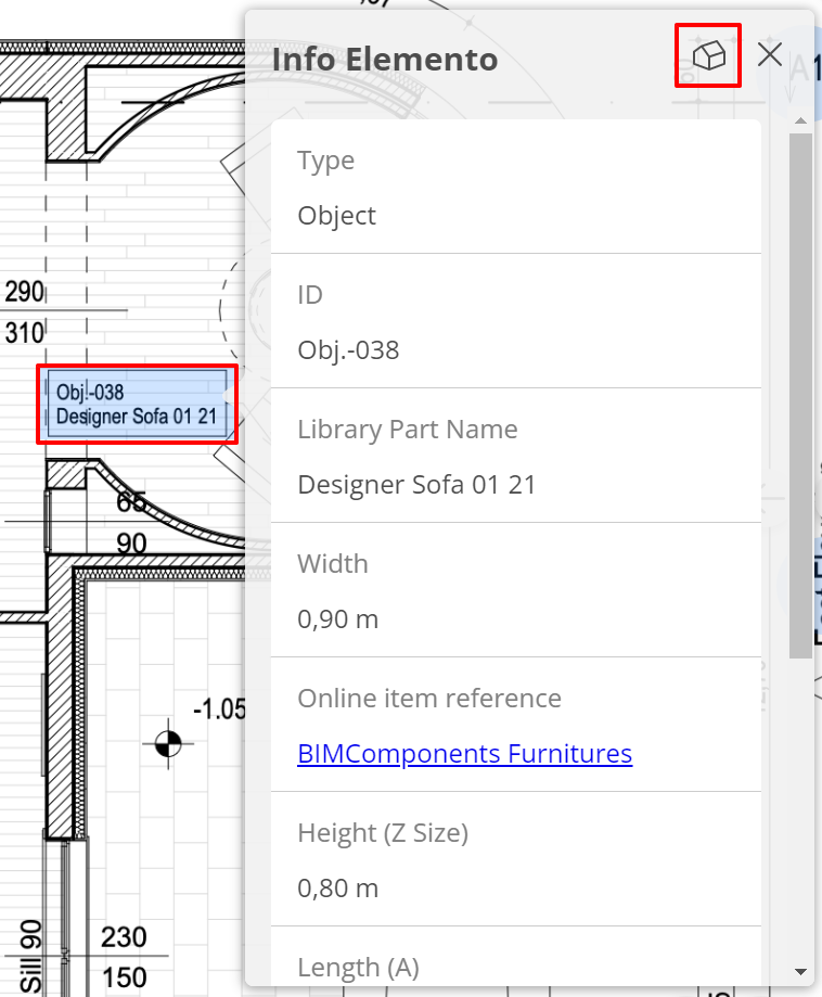 Fare clic su un'etichetta per accedere ai dati dell'elemento BIM dal layout