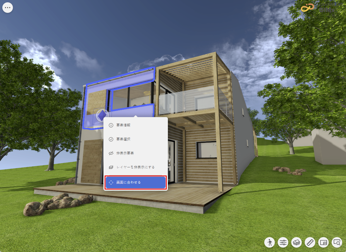 - 要素のコンテキストメニューから「画面に合わせる」を選択する。