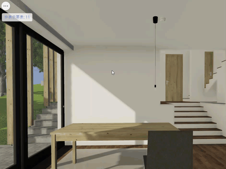 BIMx選択パレットの要素非表示機能を使用して要素を選択し、非表示にします。