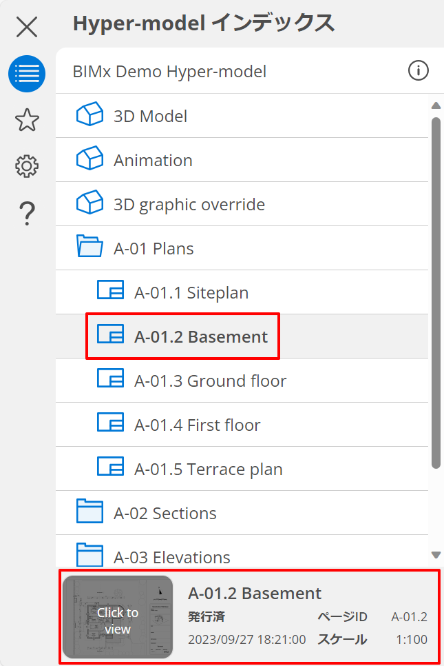 - 項目をクリックして以下の情報を表示してから、プレビューアイコンで[クリックで表示]をクリックして開きます