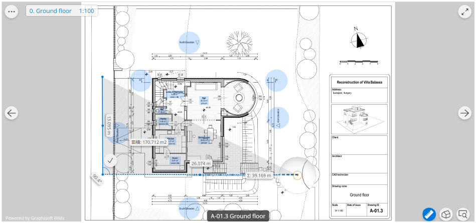 BIMx Hyper-modelにある2Dレイアウトを開きます。